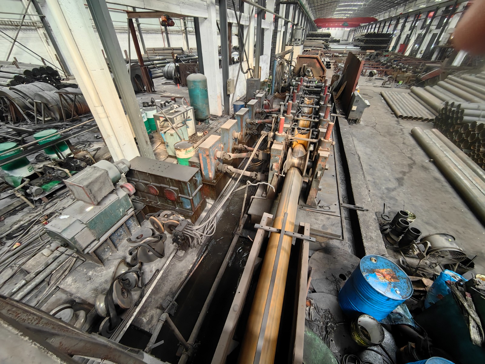 double uncoiler, leveler, shear welder, forming machine, cooling tank, vaccum tube Hf welder, sizing machine, friction saw Run out table, 10 sets of rolls, end facing machine.